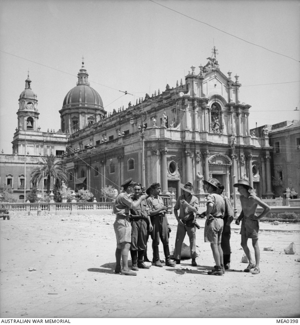 Squadron RAAF talk with the Sicilian civil police in the main square