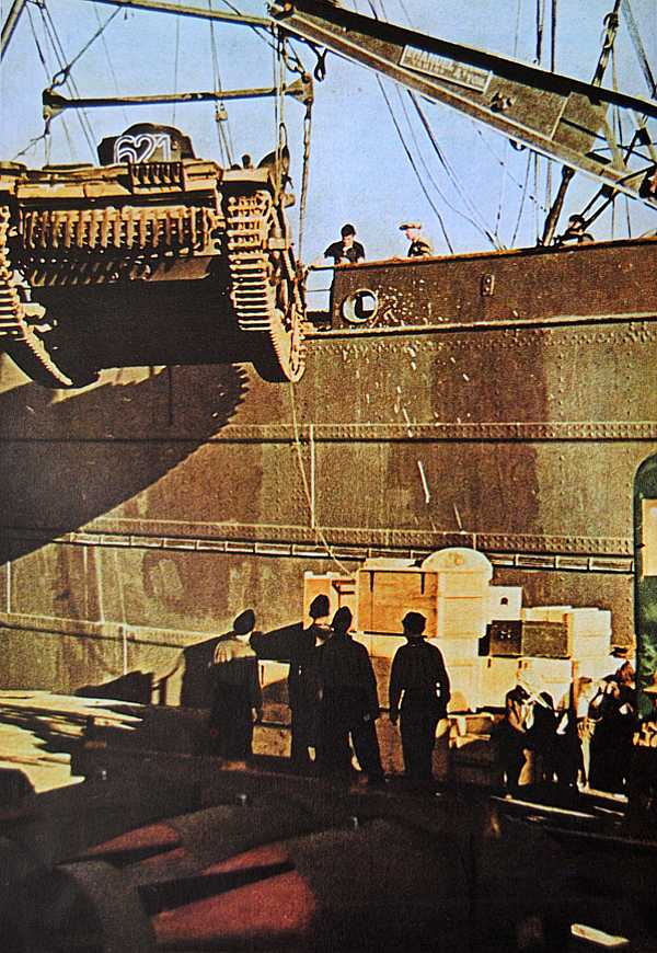 Working parties arranged. German trucks come and men taken out to work. I go to the docks. Heavy job carrying shells and boxes. Germans hurrying everybody to work harder. Our bodies are very brown and a German soldier believes we are a dark race. That we were from Australia supported his belief. One man rolled his shorts down to show that we were white.