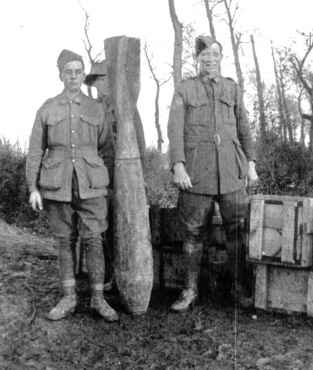 Harold Edwards (left) with a German 600lb  bomb.
