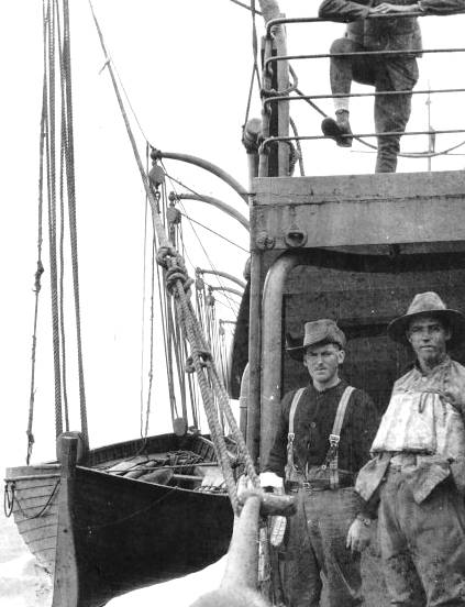 Photo taken by 2AM Harold Edwards of the original AFC Flag, when they disembarked the P&O liner Kaisar-i-Hind ('Emperor of India') at Melbourne, 14 June 1919.