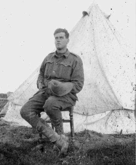 2AM Harold Edwards outside his tent at Halton Camp, Wendover.